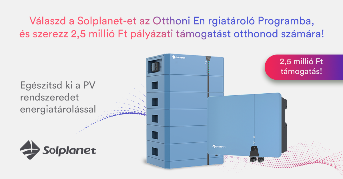 Válaszd a Solplanet-et az Otthoni Energiatároló Programba, és szerezz 2,5 millió Ft pályázati támogatást otthonod számára!